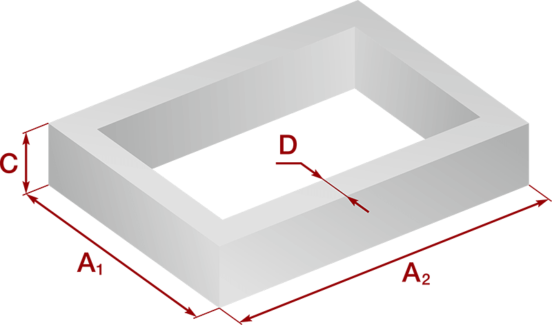 Введите в соответствующие поля параметры в метрах (длина, высота, подошва). Калькулятор автоматически рассчитывает необходимый объем бетона исходя из введенных данных. Не забудьте прибавить к полученному результату 3-5% объема на потери.